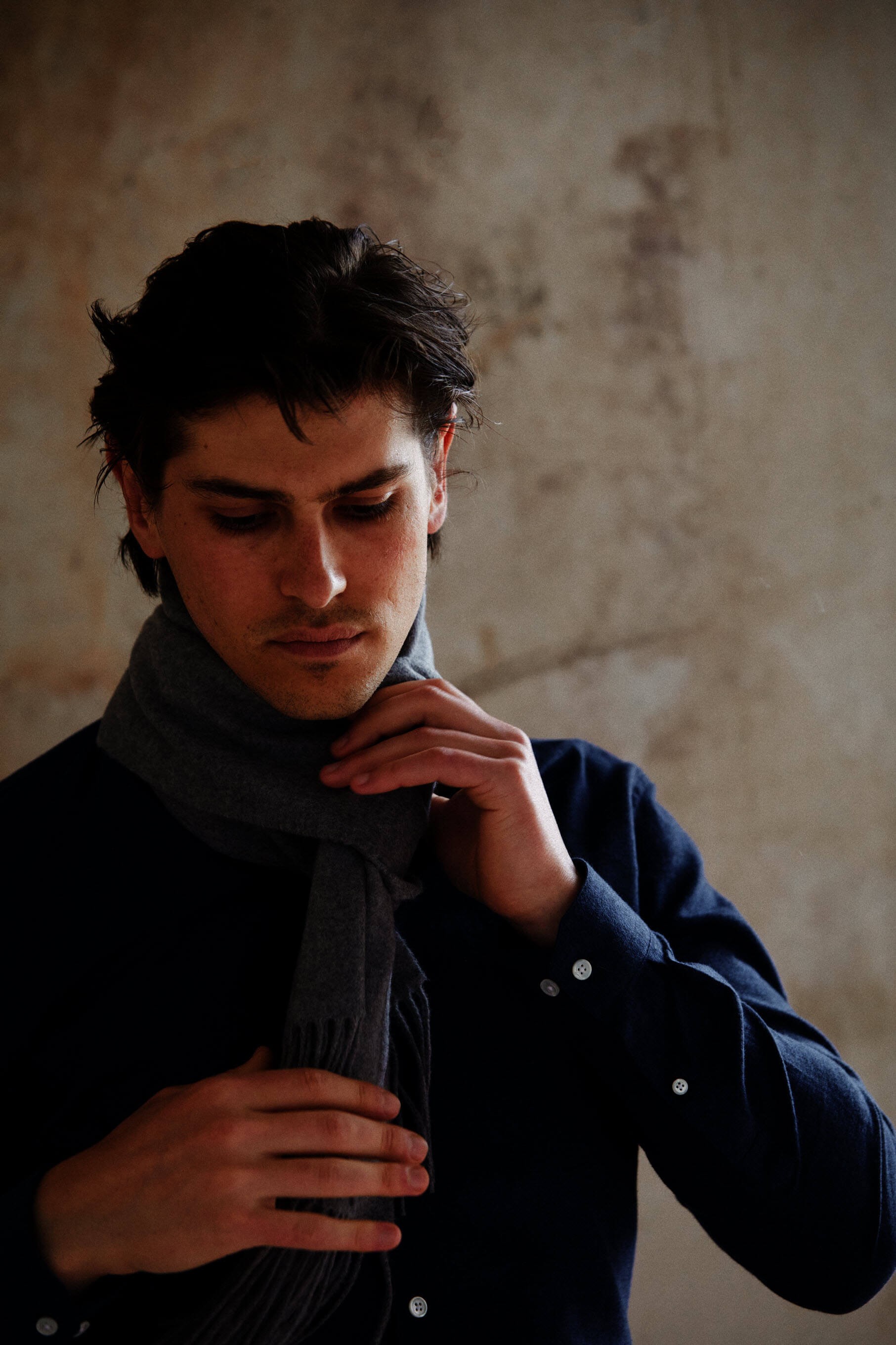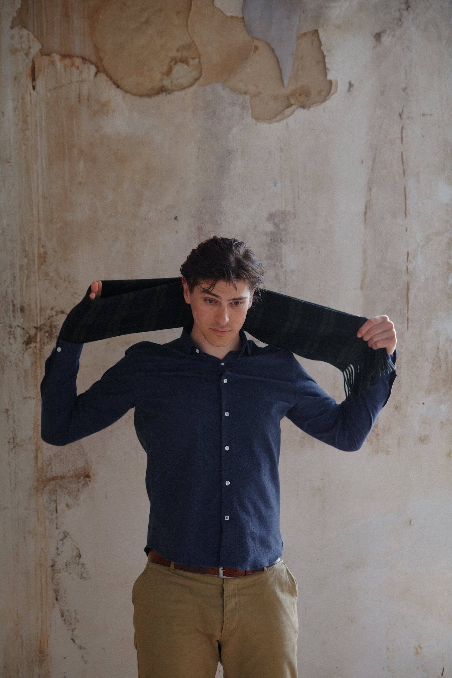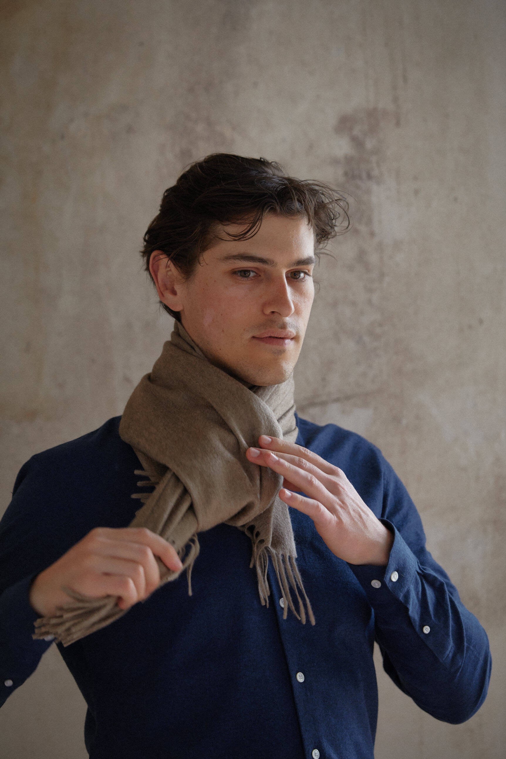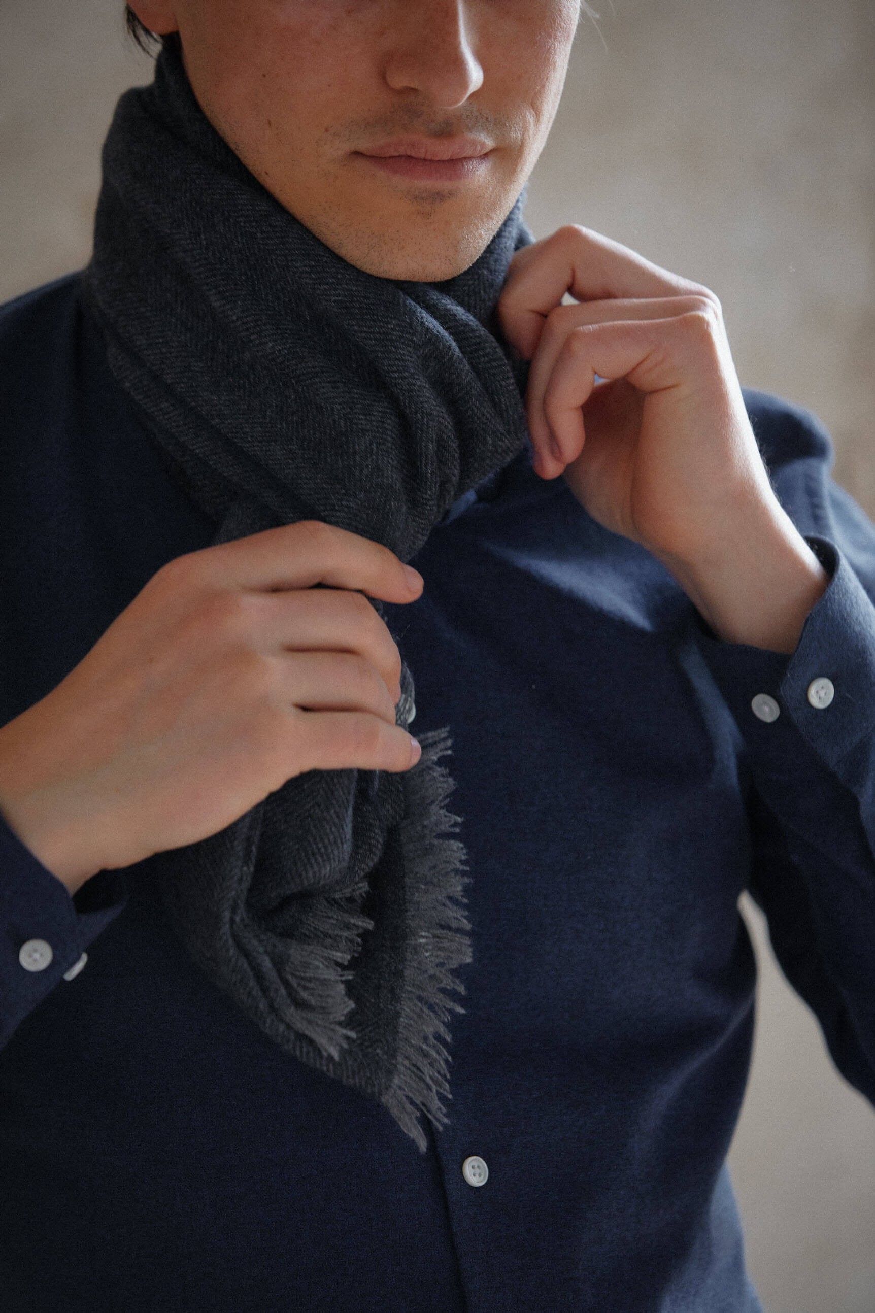 Cashmere or virgin wool scarves, made in the Italian Piedmont in a small specialized workshop. 100% Italian manufacturing from wool, cashmere or organic cotton.