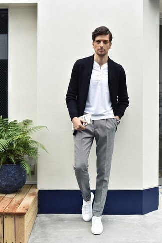 Avec un pull : choisissez un pull à grosses mailles qui mette en valeur la patte de boutonnage du henley. Le contraste des matières met en valeur chacune d’elles et donne un style travaillé.