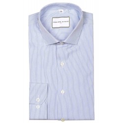 Une jolie chemise de bureau en popeline double retors à classer dans la catégorie "mini raies" ou "milleraies". Une variante à la popeline unie. Tombé et finitions impeccables.