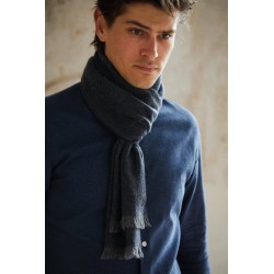 Echarpe 100% cachemire à petits chevrons discrets couleur marine avec effet chiné. 100% cachemire, fabriquée dans le Piémont Italien.